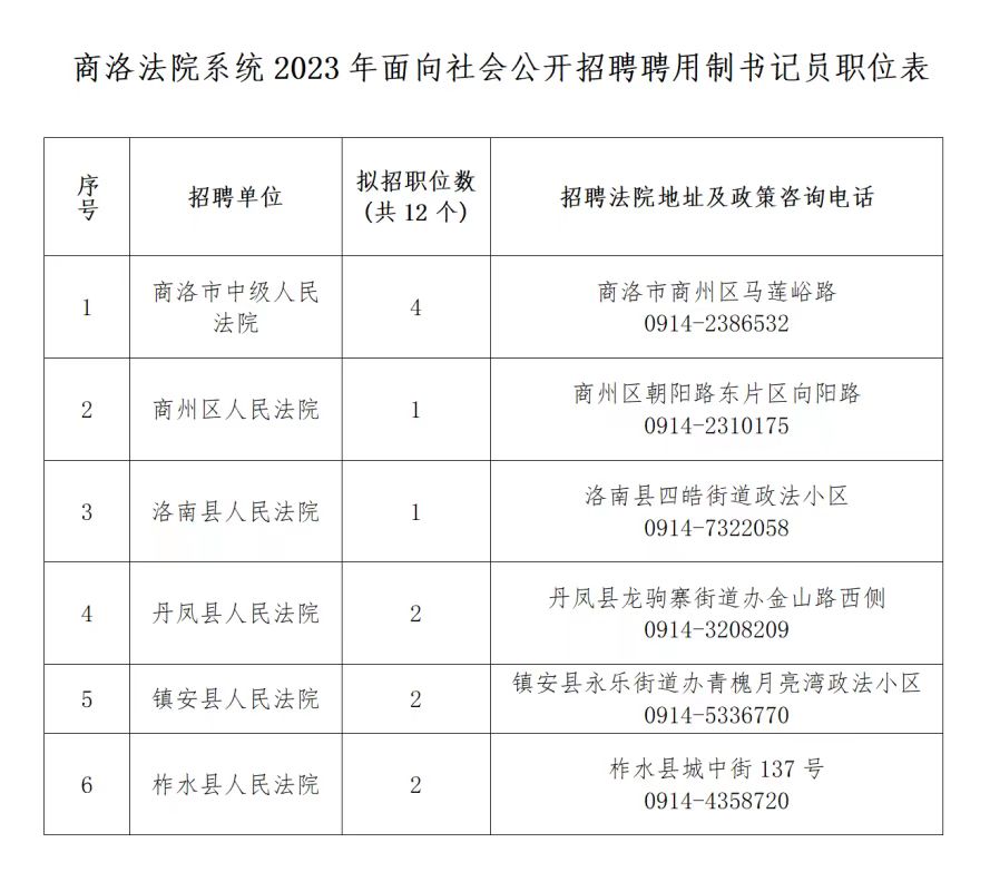 附件:《商洛法院系統(tǒng)2023年面向社會(huì)公開招聘聘用制書記員職位表》